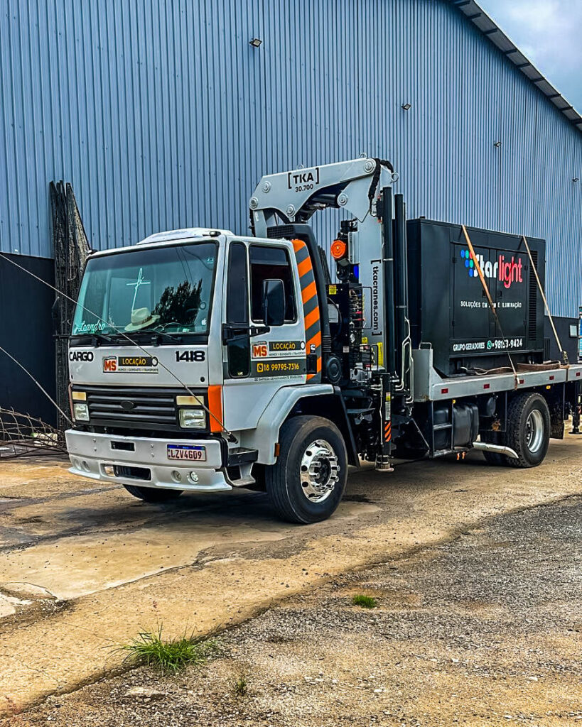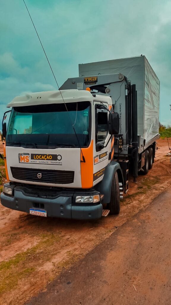 Equipado com Munck 70700, modelo do ano 2024. Inclui controle remoto com kit NR12. Alcance vertical: 27,2 metros. Alcance horizontal: 22,5 metros. Configuração de lança: 6 lanças hidráulicas + 3 lanças manuais.